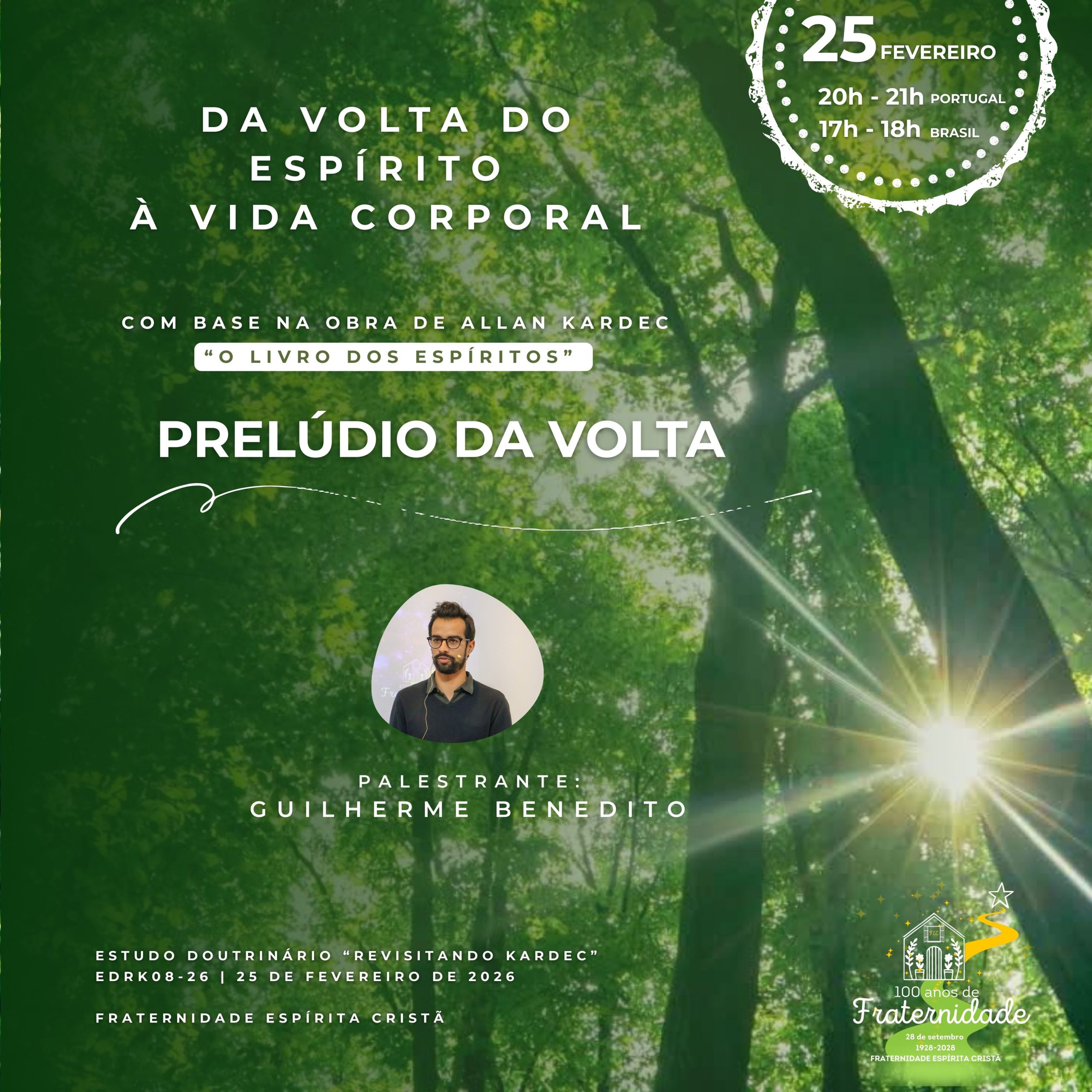 DESDE 1928 a estudar a doutrina espírita e a iluminar consciências inscreva-se 95.º Aniversário da FEC Estudo Doutrinário 2025/2026 Ciclo de Palestras "Revisitando Kardec" Dia 25 de fevereiro, 4.ª feira, 20h às 21h Pode assistir presencialmente na FEC ou através do nosso canal de Youtube e página de Facebook Contamos com a sua presença! Assista à palestra aqui! 95.º Aniversário da FEC Fraternidade Espírita Cristã (FEC) O que é a FEC Um Centro Espírita Espaço de estudo e divulgação da Doutrina Espírita Promoção de programas de estudo, palestras, seminários, workshops e conferências Publicação trimestral do boletim A Libertação Serviços de assistência espiritual A FEC desenvolve igualmente atividades de auxílio ao próximo através da ação social, em parceria com a Associação Auxílio e Amizade, uma Instituição Particular de Solidariedade Social que assiste famílias materialmente desfavorecidas na zona de Lisboa. (auxilioeamizade.pt) O que fazemos Atividades Atendimento Fraterno É uma forma de auxílio personalizado, com alguém disponível para ouvir, confortar e esclarecer de acordo com a Doutrina Espírita. Estudos São propostas de estudo em grupo (turmas) de temas que conduzem à reflexão sobre a importância da melhoria moral. Palestras Palestras de estudo doutrinário realizadas por diferentes expositores, sobre temas da atualidade. Auxílio Espiritual A FEC conta com um conjunto de serviços de auxílio, que contribuem para o auxílio físico e espiritual. Estudos Espíritas Têm como objetivo favorecer o desenvolvimento da consciência espírita, necessário ao aprimoramento moral do ser humano. AdultosCrianças e juventudeAdultos Aperfeiçoar o conhecimento do Espiritismo, por meio de estudos, leituras, pesquisas, análises, correlações e reflexões de assuntos existentes nas obras espíritas de referência. Crianças e juventude A atividade de Evangelização Espírita Infanto Juvenil, abrange as aulas de evangelização espírita, momento especial de convivência, aprendizado, reflexão, partilha de experiências e construção de vínculos de amizade e de fraternidade entre crianças e os jovens, sempre pautado pela vivência do Evangelho de Jesus. Passe Realizado pelos Benfeitores Espirituais, através da imposição das mãos dos médiuns, contribuindo para o equilíbrio físico e espiritual. Pronto Socorro Espiritual Para registar nomes de pessoas que sabemos necessitarem de auxílio mas que não frequentam o Centro Espírita. Ambulatório Espiritual Reforço magnético para problemas de natureza física. Fichas de Irradiação Forma de auxílio espiritual à distância, através do registo de nomes, em papel ou online, de pessoas encarnadas ou desencarnadas. (Enviar Aqui) SOS Espiritual Mensagem de consolo para auxílio espiritual à distância, disponível em fec.pt ou pelo telefone 218 873 794 Editorial Ler mais O nosso Boletim A Libertação A Libertação 169 “Inteligência suprema e causa primária de todas as coisas, energia criadora que preenche todos os espaços (…), permanece ainda, para a humanidade terrena, como o “desconhecido dos mil nomes”. No entanto, a intimidade que temos com Ele permite-nos estabelecer uma comunicação rápida e fácil. De imediato, sabe de nós, das nossas emoções, daquilo que nos move a cada momento porque, sendo uma presença constante em toda a parte, nada do que somos Lhe escapa ou Lhe é indiferente.(…)” A Libertação 168 A necessidade de Redenção agiganta-se e será alcançada pelo esforço próprio e com a presença da Perseverança, a amiga de todos os dias, porque nada é passível de maior recuperação do que a alma humana, mas sem constância a luta por essa vitória esmorece. Que este seja um Feliz Natal de 2025, sempre com Jesus! A Libertação 167 A Doutrina Espírita ensina-nos a identificar a estesia da vida, a captar a beleza da existência através da sensibilidade, a qual se apura no ser humano no decorrer das múltiplas existências e por meio do aprendizado que vai despertando a sua atenção para delicadezas que anteriormente nem sequer identificava. A Libertação 166 Suprema, e quem sabe derradeira, conquista da Humanidade, a capacidade de amar pela satisfação de o fazer sem nunca sentir falta de retorno, sem precisar de troca de afeto para continuar a amar, repõe continuamente aquilo que doa, sem que jamais chegue aquele instante sombrio em que a si mesma a alma se interroga se vale a pena continuar a gostar, a amar, se nem compreensão se recebe de volta, para já não dizer igual dose do afeto que se doou. O Nosso Trabalho Atual AllFEC All FEC Janeiro 17, 2026 Janeiro 17, 2026 Janeiro 17, 2026 Setembro 28, 2025 Setembro 19, 2025 Julho 5, 2024 Agosto 6, 2022 Agosto 1, 2022 Agosto 1, 2022 Agosto 1, 2022 Telefone: 218 821 043 (chamada para rede fixa nacional) Telemóvel: 913 313 766 (chamada para rede móvel) Email: correio@fec.pt Contacte-nos A carregar…